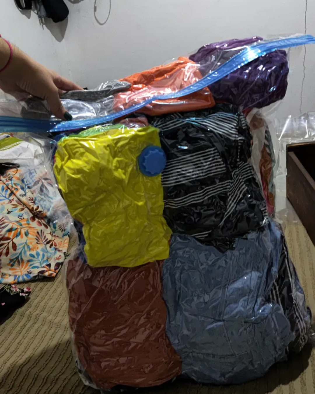 Hasta un 80% menos de volumen, dependiendo del tipo de ropa o manta que guardes.